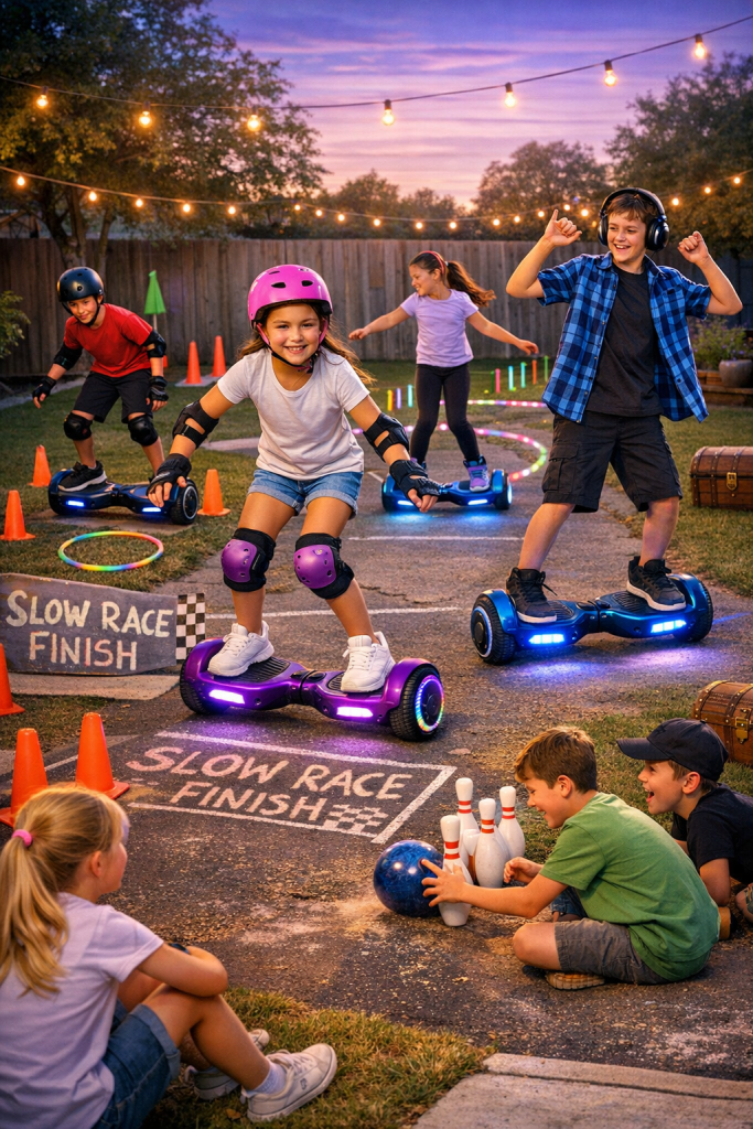 Below are 10 fun hoverboard games kids can play at home using a kids hoverboard, whether it’s a blue hoverboard, purple hoverboard, or a sleek electric black hoverboard.