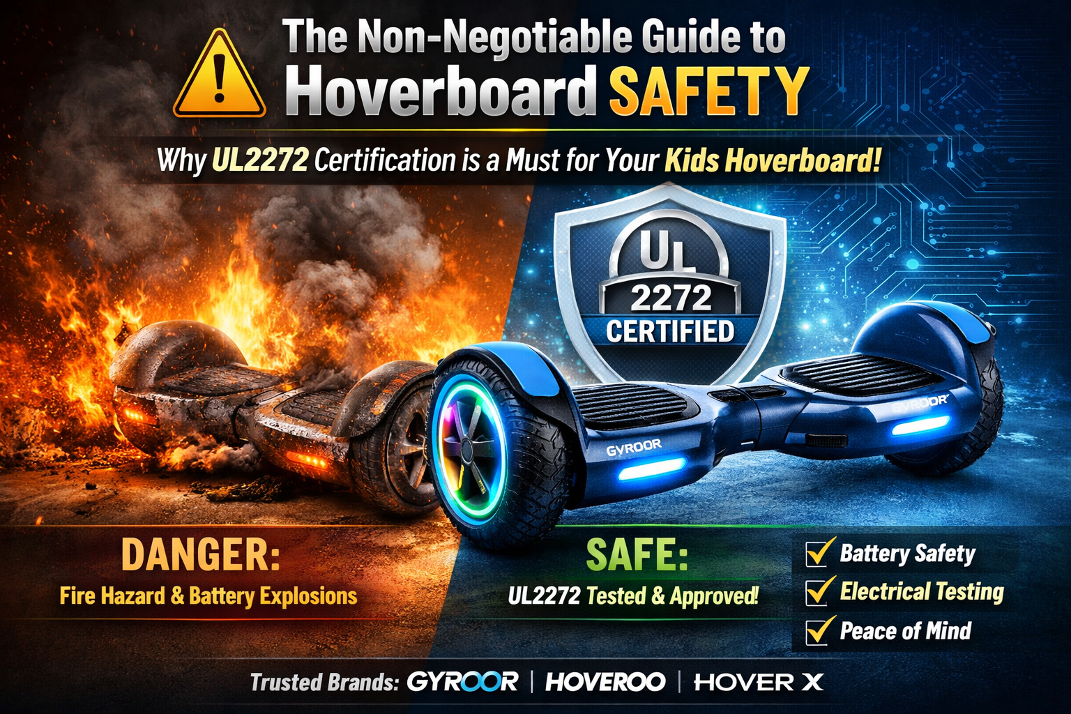 If a hoverboard does not clearly state UL2272 compliance, it should not be considered safe — especially as a kids hoverboard.